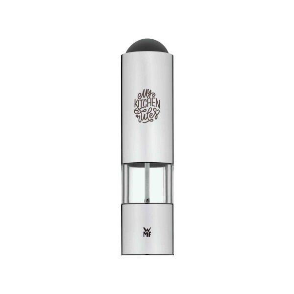 From salt and pepper to flavorful spices, the Electric Spice Mill by WMF provides fresh grinding at the touch of a button. Its has a ceramic grinding mechanism which is harder than metal, food-neutral, and free from wear, corrosion and abrasion. The convenient setting wheel offers adjustable automatic grinding from fine to coarse and comfortable one-handed use. Crafted from elegant matte Cromargan®, transparent acrylic glass and high-quality plastic, this spice mill ensures practical visualization and easy refilling, and is equipped with integrated lighting that provides perfect visibility while seasoning.