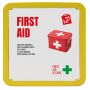 Handig polyester etui met sleutelring met 16 stuks EHBO-benodigdheden. De kit bevat een schaar (9 cm), 2 huidreinigingsdoekjes, 1 elastisch verband (4 meter x 6 cm), 2 wattenbolletjes (0,5 g), 3 veiligheidsspelden (3,6 cm), 5 pleisters (45x19 mm), en 2 wattenpinnen (8 cm). Zeer geschikt voor reizen, festivals, evenementen en andere buitenactiviteiten, en heeft een groot decoratieoppervlak. Een verbanddoos wordt beschouwd als een medisch hulpmiddel en valt onder 93/42/EEG, op basis van het beoogde gebruik: "diagnose, preventie, bewaking, behandeling of verlichting van ziekten". Dit medische hulpmiddel behoort tot klasse I, Is.