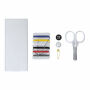 Naaiset gepresenteerd in een elegant wit doosje van stevig PS.Bevat:1 schaar1 draadhulper1 pincet1 speldenkussen3 spelden met glanzend witte kop3 naaldenGaren in 6 verschillende kleuren2 knopen2 drukknopen1 veiligheidsspeldIdeaal om mee te nemen in je handtas, rugzak of reiskoffer dankzij het compacte formaa