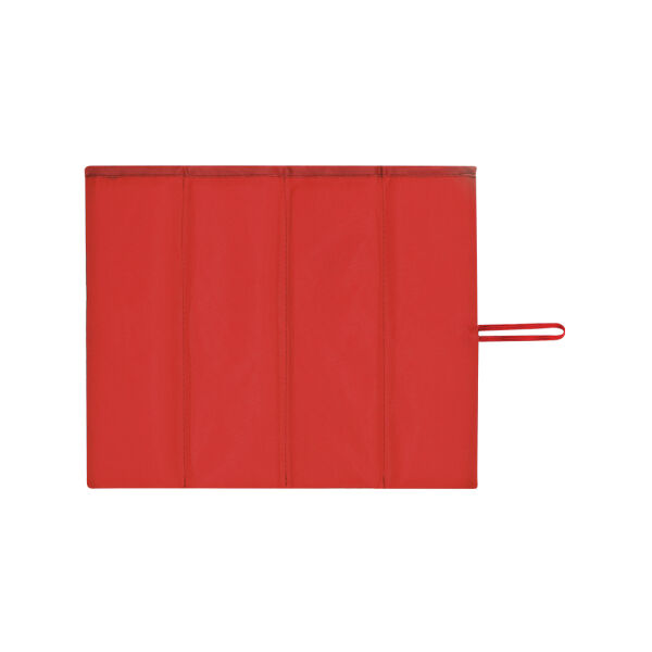 Opvouwbaar kussen van 210D nylon met PE-schuim. Opvouwbaar in 4 delen, met elastisch koord om het samen te houden. Geschikt voor grote evenementen.