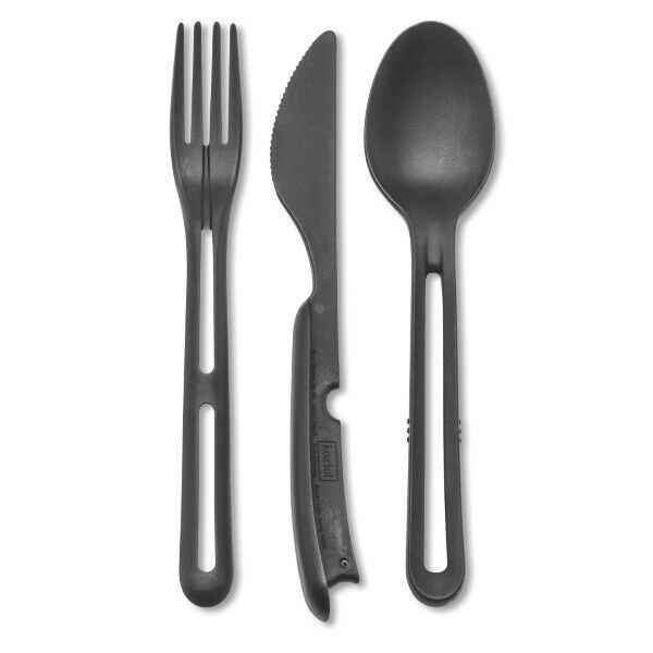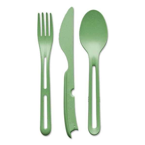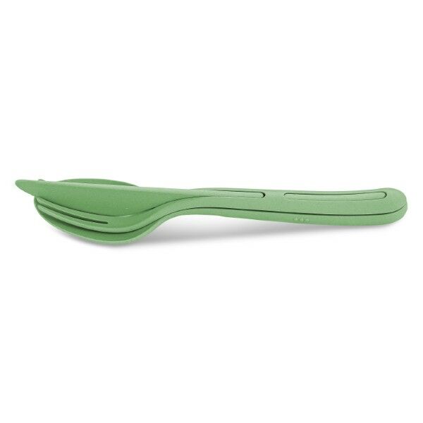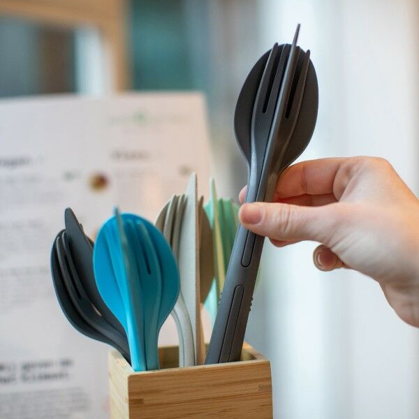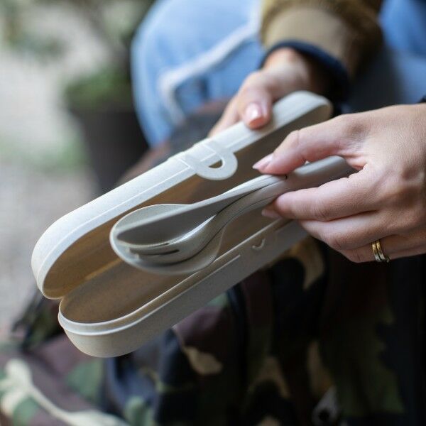 Mes, vork, lepel - klaar. Eindelijk is er een slim ‘to go’-bestek zonder poespas en in handzaam formaat. Nooit meer jongleren met je eten! Je kunt alle onderdelen zonder veel gepuzzel in elkaar klikken en weer uit elkaar halen. Om de set los te maken til je het mes bij de punt op en trek je het onderlangs weg. De bestekonderdelen liggen goed in de hand, zijn ultralicht en passen in elke tas. De in Londen woonachtige designer Cairn Young is al jaren gefascineerd door de hoge Japanse kunst van houtverbinding en heeft van daaruit een ware obsessie ontwikkeld om zelf dingen op esthetische en intelligente wijze in elkaar te passen en samen te voegen. Het is een spel met geometrie, symmetrie en humor, dat uiteindelijk altijd eindigt in een verbazingwekkend stuk design.