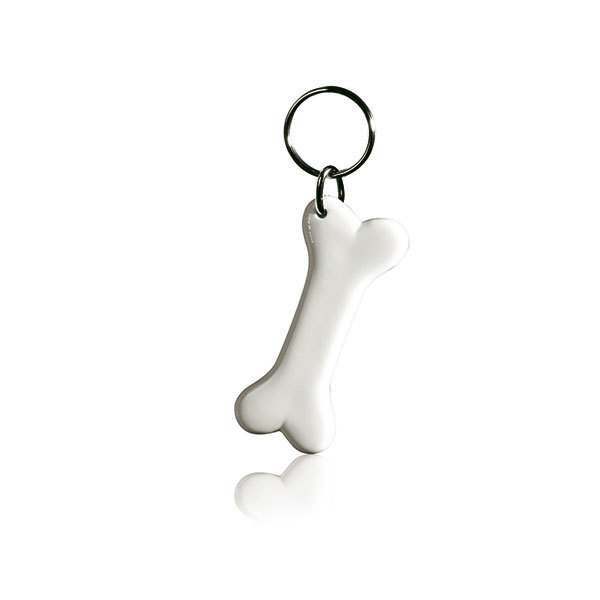 Aparte unieke sleutelhanger van acrylaat in vorm van een bot. Uw hond zal er ook blij mee zijn.