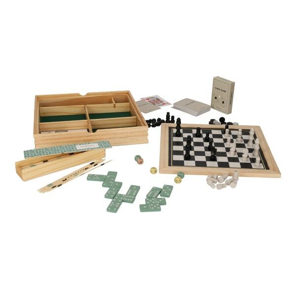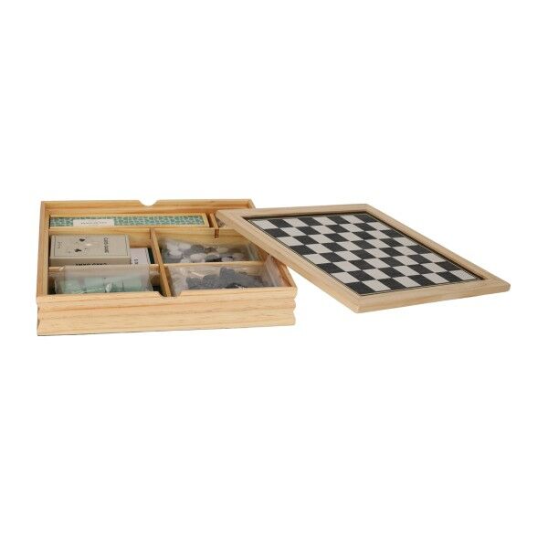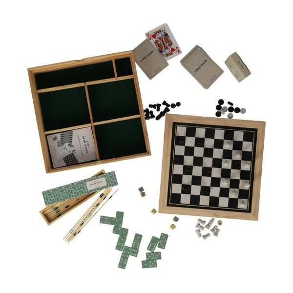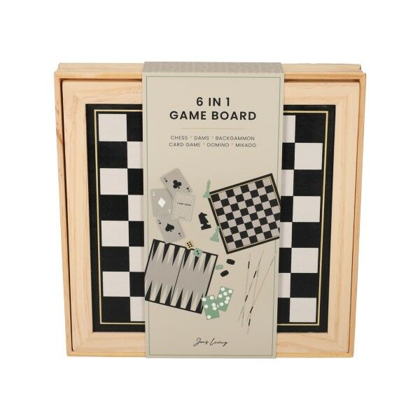 Beleef een avond vol plezier met dit veelzijdige 6-in-1 bordspel! Of je nu een strategisch gevecht aangaat in schaken, een potje backgammon speelt of de spanning van domino en mikado ervaart, dit spel biedt voor ieder wat wils. De set bevat schaken, dammen, backgammon, kaarten, domino en mikado, waardoor je nooit zonder vermaak zit. Perfect voor gezellige avonden met familie of vrienden of om mee te nemen op vakantie.