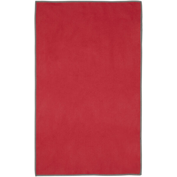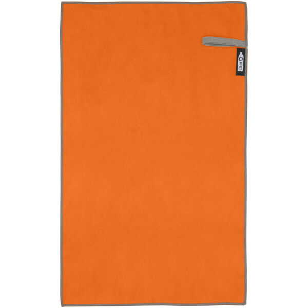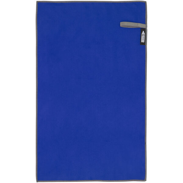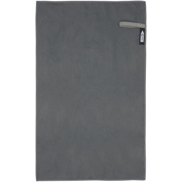 De Pieter sporthanddoek absorbeert zeer goed, is licht, droogt snel en de stof is duurzaam en extreem zacht. Wanneer de handdoek is opgevouwen en vastgezet met de elastische band, is deze zeer compact, waardoor hij geschikt is om mee te nemen naar de sportschool, het zwembad of voor tijdens het backpacken of kamperen. De handdoek heeft een afmeting van 50 x 30 cm en is gemaakt van 90% GRS gerecycled polyester en 10% nylon en kan in de wasmachine gewassen worden op 40 °C. Geleverd met een opbergzakje (15,5 x 10 cm) gemaakt van gerecycled PET-plastic, dat een groot oppervlak biedt voor het afdrukken van een logo.