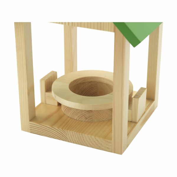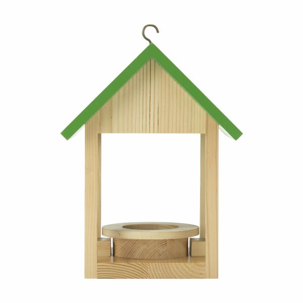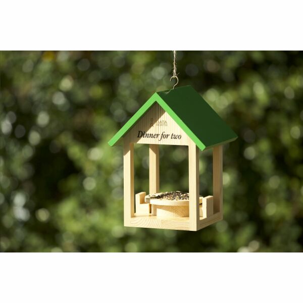 Charmant vogelvoederhuisje van het merk Rackpack, gemaakt van FSC 100% gecertificeerd dennenhout en ingericht met een tafel en twee stoeltjes. Dit huisje biedt vogels een sfeervolle plek om te rusten en te eten en maakt elke tuin of elk balkon tot hun favoriete restaurant. Per stuk verpakt.