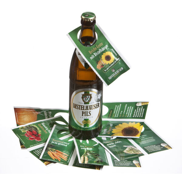De zaadjes die in de verpakking zijn verwerkt, voegen een duurzaam en symbolisch element toe. Na gebruik kunnen ze geplant worden om prachtige bloemen, groenten of kruiden te laten groeien. Bestelbaar vanaf 500 stuks tot 100.000 stuks. Geef met deze flessenhalsdecoraties niet alleen een uniek accent aan flessen, maar ook een boodschap van groei en bloei! De verpakking is na gebruik te recyclen via het oud-papier. Op zoek naar andere zaden of oplages? Vraag gerust naar de mogelijkheden.