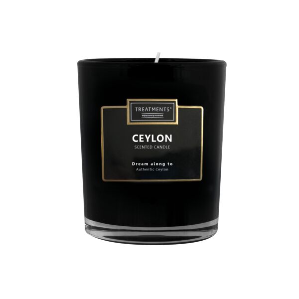 Maak een statement in uw huis met de prachtige Ceylon Scented Candle van Treatments®. Door haar strakke, luxueuze en moderne uitstraling is deze kaars de perfecte keuze is voor ieder interieur. Het vlammetje is door het prachtige semi-transparante rookglas goed zichtbaar. Hierdoor ontstaat een aangename, warme en sfeervolle ambiance die wordt gecomplementeerd door de zinnenprikkelende geurcombinatie van shea noten, sandelhout, patchoeli, fruitbloesems en jasmijn die u in gedachten zal meevoeren naar het authentieke Ceylon.