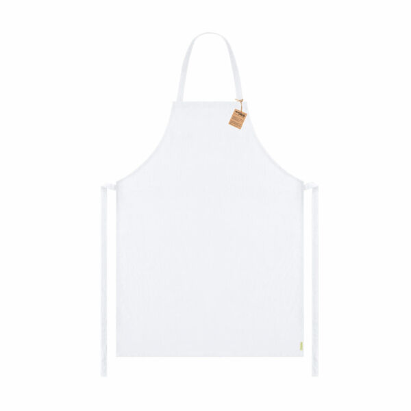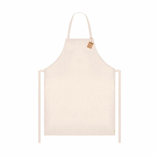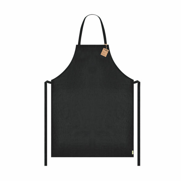 Schort vervaardigd uit 180 g/m² gerecycled katoen. Met verstelbare banden en snit onder de knie. Inclusief label van gerecycled katoen.