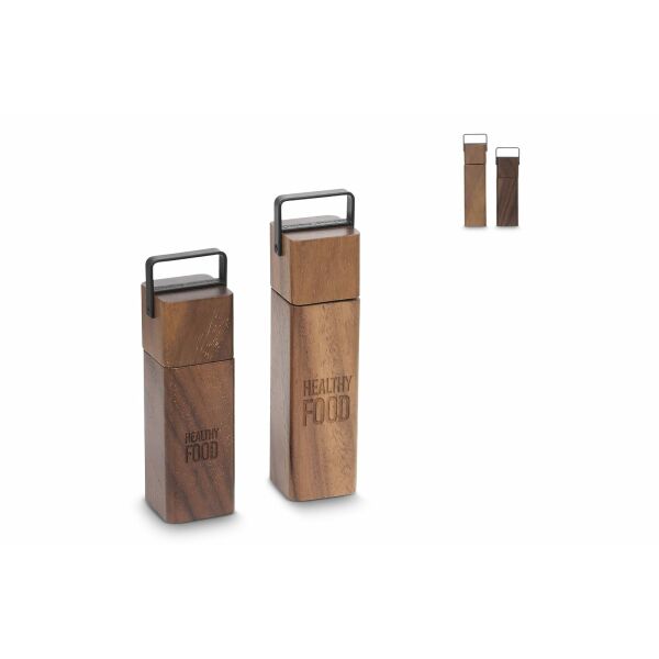 Zout- en pepermolenset uit de BlackSmith-serie van Orrefors Jernverk. Het vierkante torenontwerp bestaat uit een grotere molen (20x5cm), die u kunt instellen voor zout of peper, en een kleinere molen (16x5cm). Gemaakt van elegant walnoothout en voorzien van een duurzame keramische maalschijf, is deze set perfect voor dagelijks gebruik, barbecues en speciale diners.
