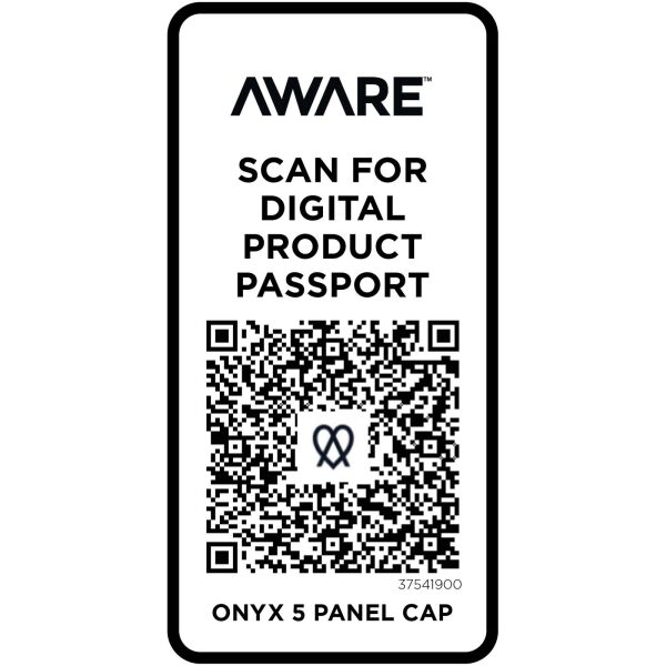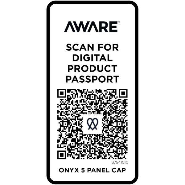 De Onyx 5 panel cap is gemaakt van 70% gerecycled katoen en 30% gerecycled polyester. Hij is ontworpen voor een comfortabele pasvorm met een hoofdomtrek van 58 cm en de metalen gespsluiting zorgt voor eenvoudige, veilige aanpassingen. De cap bevat Cyclo® gerecyclede vezels waarbij voorgesorteerd afval wordt gebruikt dat de kleur van het garen bepaalt. Deze vezels verminderen niet alleen de vraag naar nieuwe grondstoffen, maar tonen ook een engagement voor een circulair leven, waarbij ze de essentie belichamen van het verminderen van afval en het bevorderen van een gesloten kringloopsysteem. Elke cap wordt ook geleverd met een Aware™ tracer. Met deze innovatieve functie kunnen gebruikers de oorsprong en de reis van hun artikel volgen via een QR-code, waardoor de transparantie in de toeleveringsketen wordt vergroot en er een sterkere band is tussen het product en het productieproces.