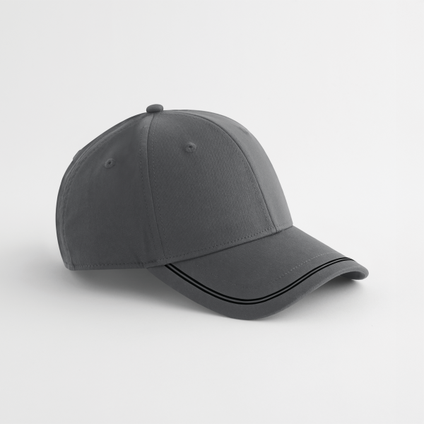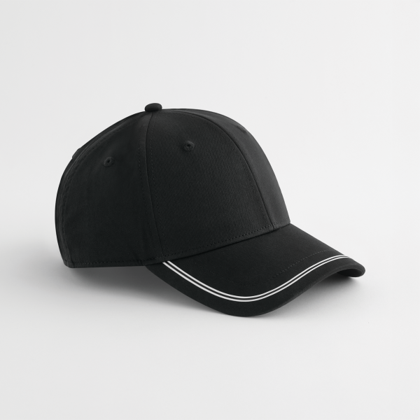 100% gerecycled polyester, GRS-gecertificeerd. Silicondetails. Ultrazachte, ademende zweetband die vocht afvoert voor langdurig draagcomfort. 6-panelen constructie met gestructureerde voorpanelen. Voorgevormde klep. Genaaide ventilatieoogjes. Verstelbare sluiting met stoffen band en drievoudige gesp. Afneembaar label voor eenvoudig rebranding.
