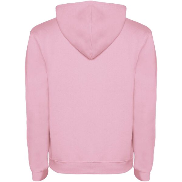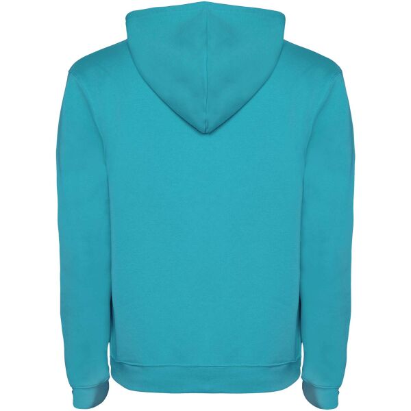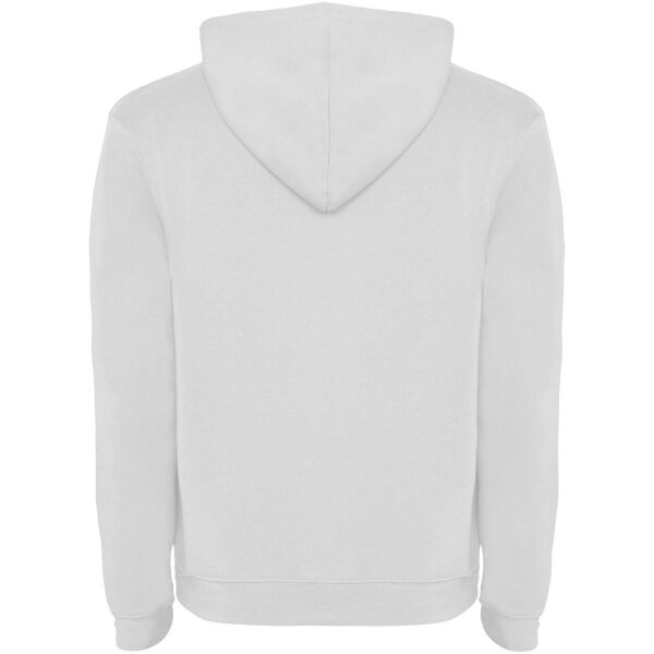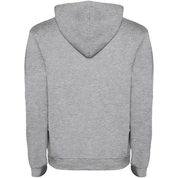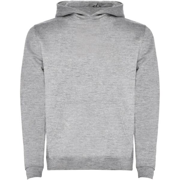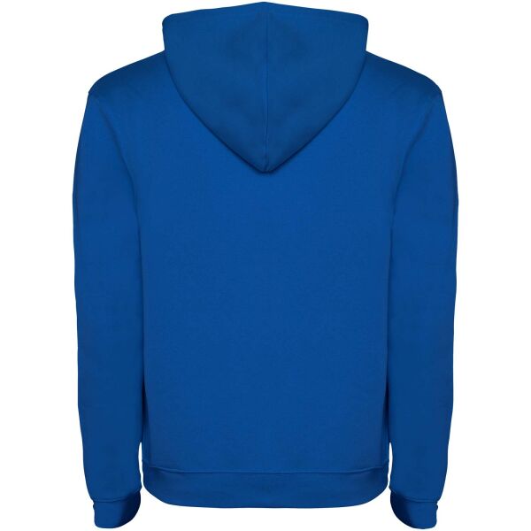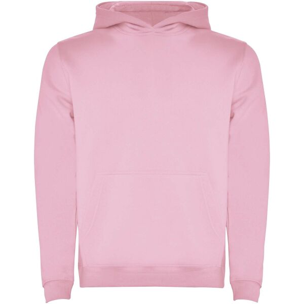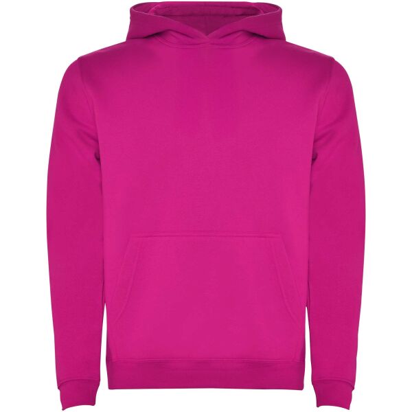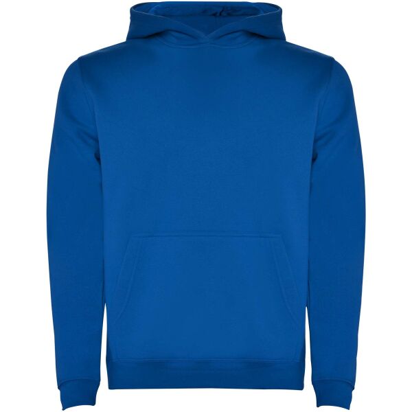Tweekleurige hoodie met dubbele stof. Versterkte bedekte naden in de kraag en kangoeroezak. 1x1 elastaan rib in manchetten en tailleband. Verwijderbaar etiket. Het model is 120 cm en draagt maat 5/6.