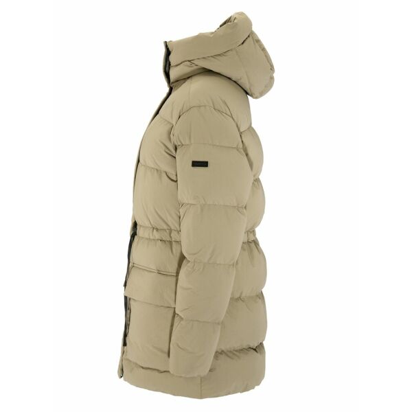 Crafted for both leisure and formal occasions, this stylish puffer jacket seamlessly blends function and a minimalistic expression. Its water-repellent outer fabric combines with thick down insulation to deliver exceptional warmth when temperatures drop. In addition, the jacket features two spacious hand-warming pockets, a protective hood, and an adjustable waist for a tailored fit and flattering silhouette. With a hip-length cut, it provides added coverage for enhanced warmth and comfort on chilly winter days.