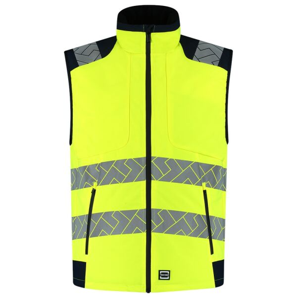 De Bodywarmer High Vis Redefined van Tricorp biedt zichtbaarheid, bescherming en comfort in één robuuste laag. Gemaakt van 100% gerecycled polyester met een stevige ripstop-structuur en een doekgewicht van 200 g/m2, is deze bodywarmer een duurzame keuze. Dankzij het ademende en waterafstotende materiaal blijf je droog én comfortabel, zelfs als het weer niet meewerkt. De gevoerde binnenkant houdt je warm, terwijl de high visibility reflectie-elementen rondom de torso en op de schouders zorgen dat je altijd opvalt. Ideaal voor professionals in de bouw, logistiek en infra die buiten presteren onder elke omstandigheid. De verstelbare taille, verlengd rugpand en comfortabele fleecekraag zorgen voor een perfecte pasvorm en extra bewegingsvrijheid. Met meerdere afsluitbare zakken, inclusief een waterdichte binnenzak, heb je jouw essentials altijd binnen handbereik. De bodywarmer voldoet aan de EN ISO 20471-normering, wat betekent dat je zichtbaar bent en blijft , ook bij weinig licht of in gevaarlijke werksituaties. Daarnaast is de Bodywarmer High Vis Redefined een verantwoorde keuze. Deze bodywarmer draagt niet alleen het GRS-keurmerk, maar ook het OEKO-TEX® 100-label ontbreekt niet. De Bodywarmer High Vis Redefined is verkrijgbaar in de maten XS tot en met 5XL en in de kleuren Fluor Yellow Ink en Fluor Orange Ink. Combineer deze bodywarmer met andere items uit de High Vis Redefined-lijn voor een complete, professionele en duurzame werkoutfit.