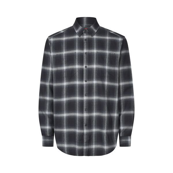 Casual flannel shirt in soft, lightly brushed cotton with classic plaid pattern. Chest pockets, YKK press buttons, and pleat at the back.