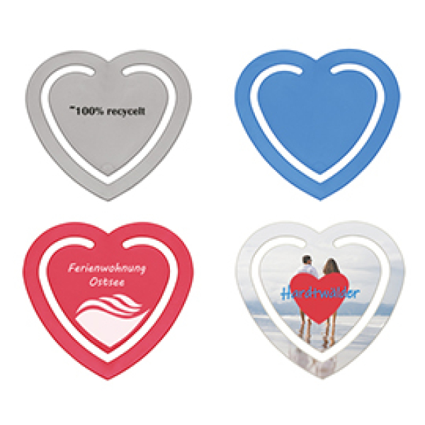 Leuk voor mailings en Eco deze paperclip in vorm hart. Gemaakt uit 100% gerecycled kunststof.