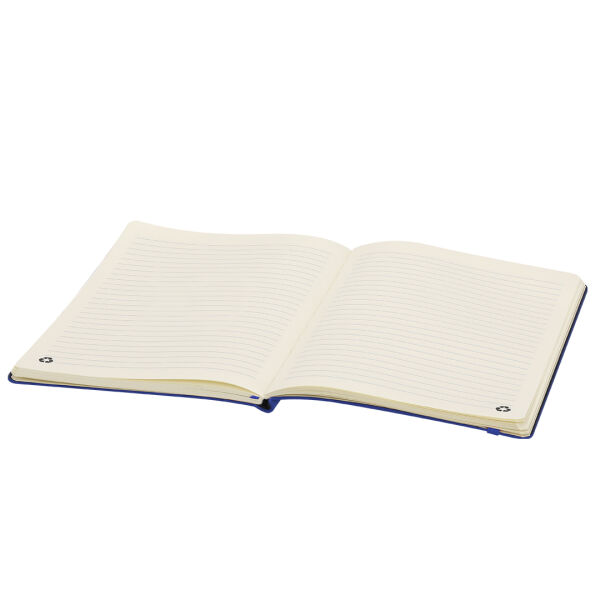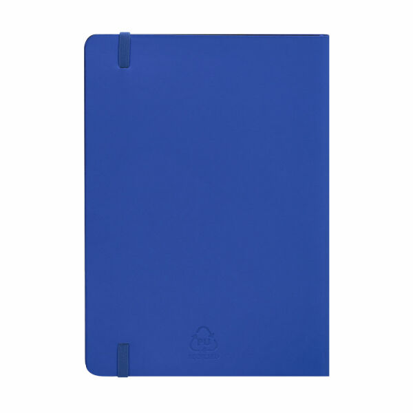 Notitieblok met flexibele kaften en gemaakt van zachte gerecyclede PU. Met bladwijzer en bijpassende elastische sluittape. Bevat 80 crèmekleurige vellen met gestreepte opstelling. Met een gerecyclede PU-badge. Gerecycled PU valt op door zijn weerstand en elasticiteit. Dit gerecyclede en recyclebare materiaal is een duurzame optie die de vezels die in de productieprocessen worden weggegooid redt, waardoor materiaalverspilling wordt geminimaliseerd en zo bijdraagt aan het verminderen van de milieubelasting, terwijl de oorspronkelijke eigenschappen behouden blijven.