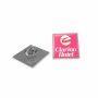 Metalen button, rechthoekig 53x78 mm, achterkant met verticale speld