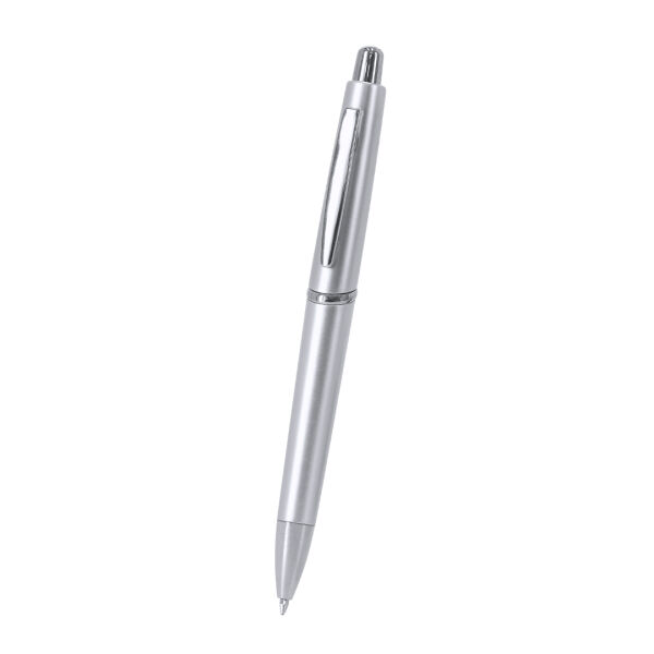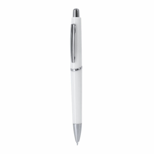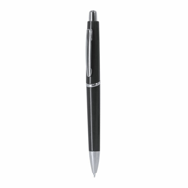 Drukknopmechanisme pen in resistente ABS. Gemaakt in een elegant ontwerp met chromen accessoires, met knop, clip en punt in combinatie. In zwarte inkt.