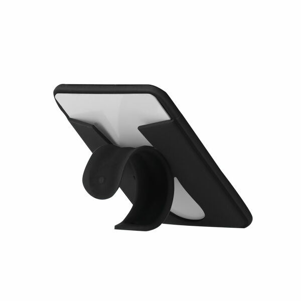 Magnetische kaarthouder gemaakt van siliconen. Ideaal om je smartphone in elke positie te bekijken dankzij het multi-positie ontwerp van de opvouwbare handgrepen. Met kaartenvak.